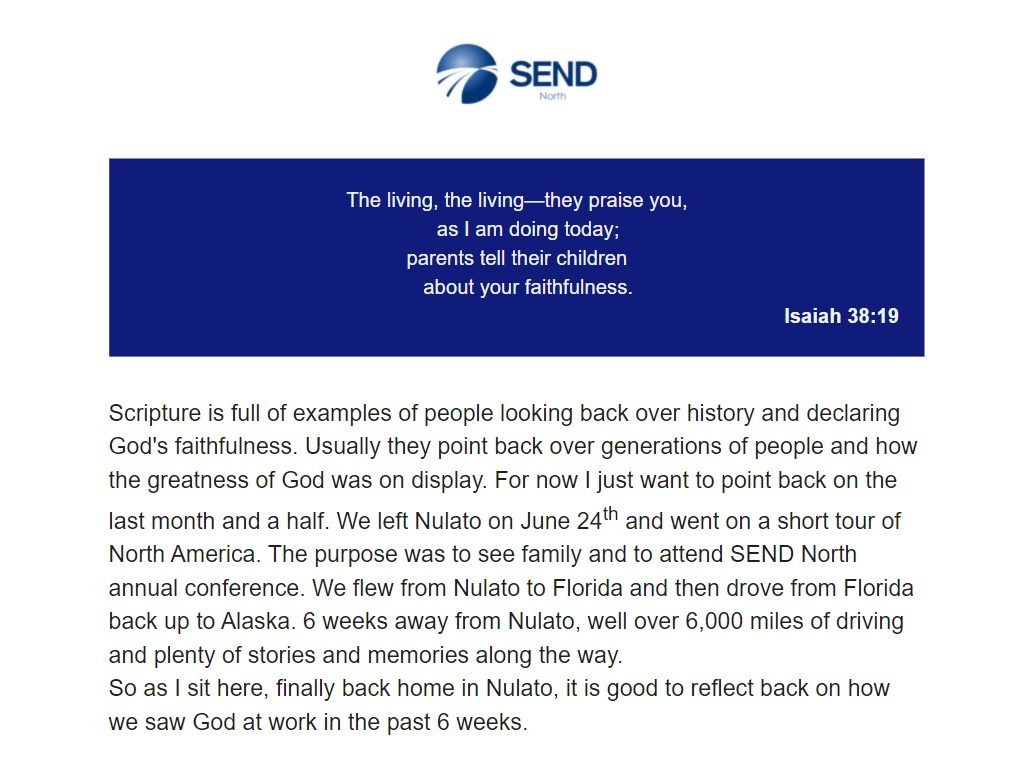 The top portion of each prayer email we send out is shared here. If you would like to receive the whole update with specific prayer requests click the “Pray” button to sign up.